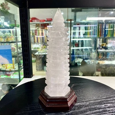 3.5LB Natural White Quartz Pagoda Hand Carved Crystal Wenchang Tower