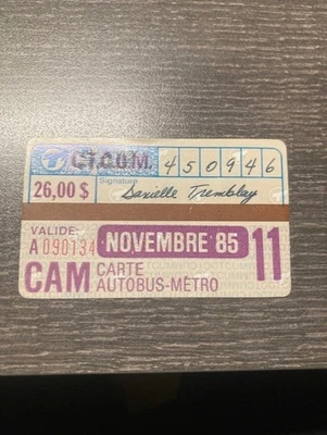 CTCUM COMMISSION TRANSPORT MONTREAL NOVEMBRE 85 CAM AUTOBUS METRO PASS 26 QUEBEC