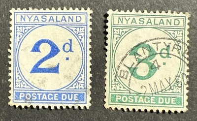 Nyasaland 1950 Postage Due Stamps 2d , 3d . Used Hinged