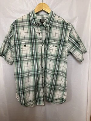 CE Schmidt Workwear Shirt Mens Med Green Plaid Short Sleeve Pocket Casual (T1)