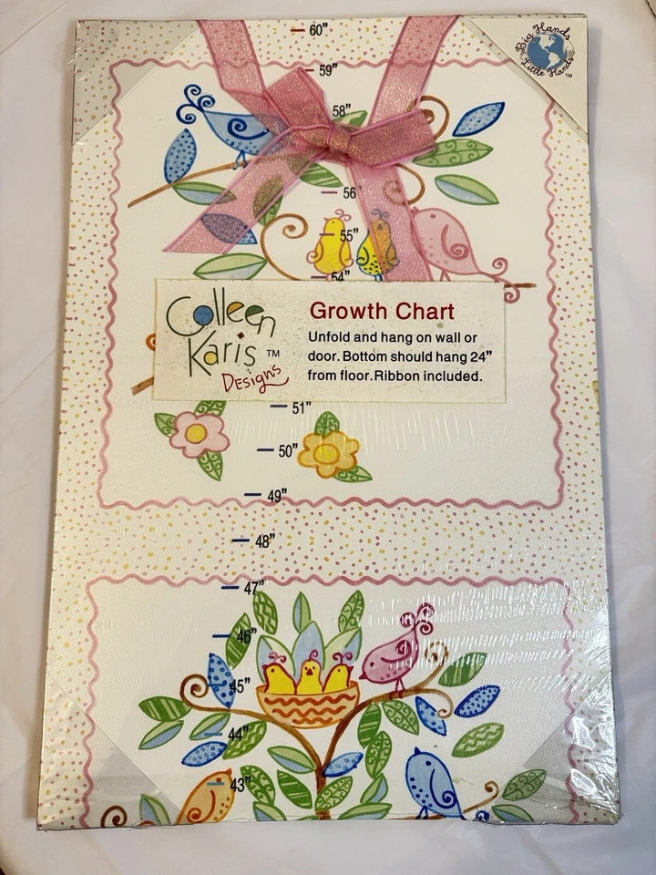 Colleen Karis Designs Growth Chart Birds And Flowers Little Girl Pink Ribbon