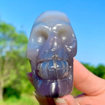 172G Natural crystal Agate cave hand-carved skull crystal specimen treatment