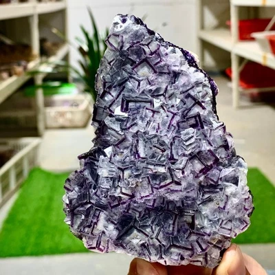 466G Inner Mongolia Natural Fluorite Purple Edged Cube Crystal Mineral Specimen