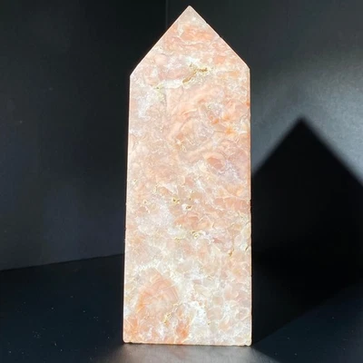578g Natural Crystal Tower Sakura Pink Agate Polished Quartz Wand Point Healing