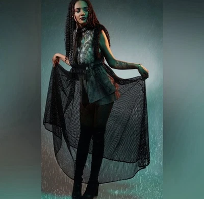 Black Maxi Dress Mesh See-Through Size Medium Sleeveless