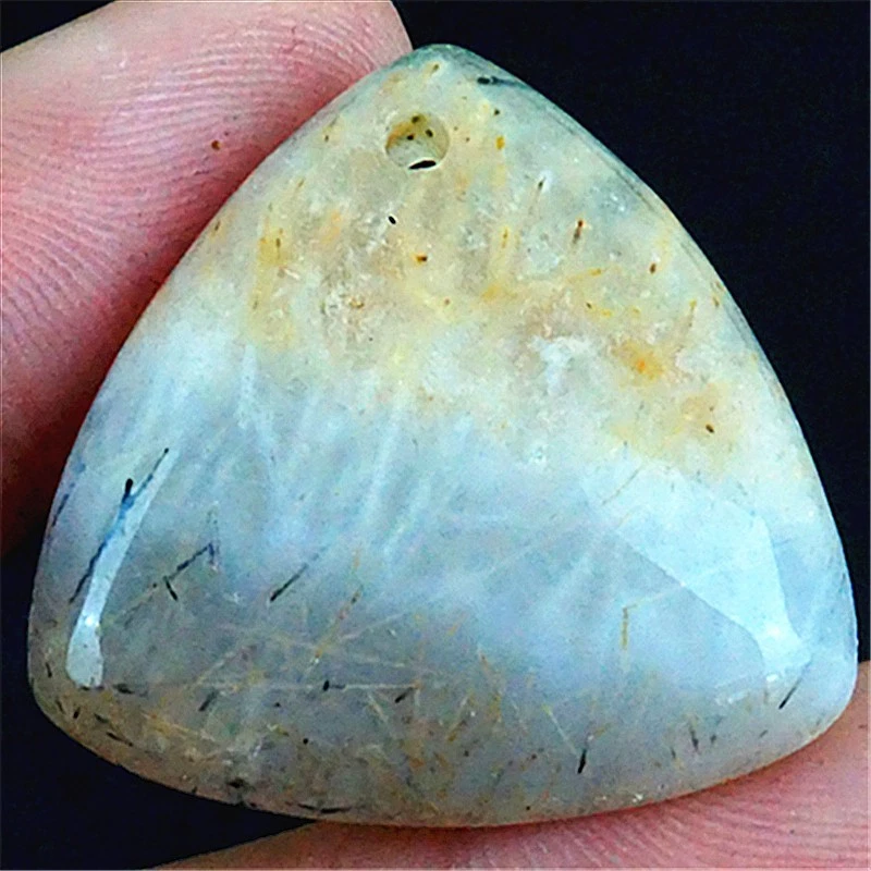 T45977 40x21x7mm Natural Agate Brown/black Rutilated Oval Pendant Bead