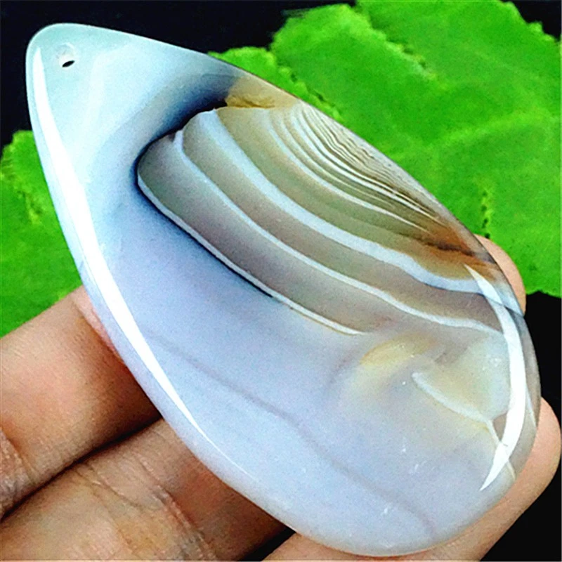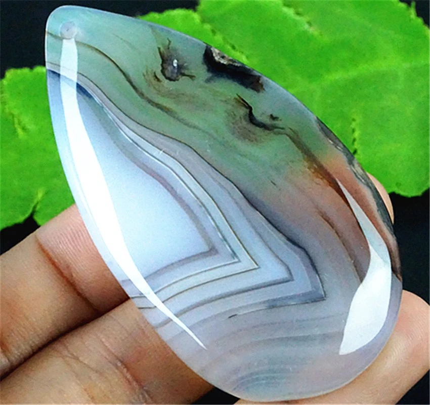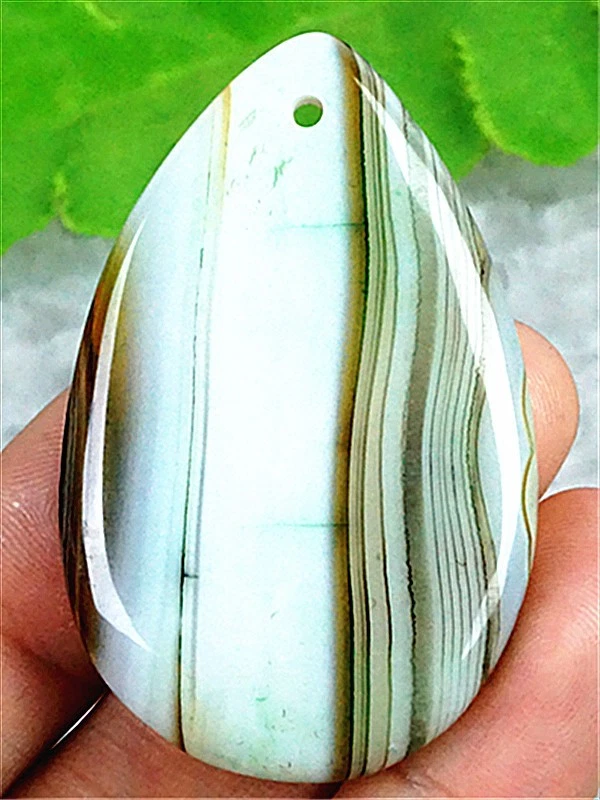 DY10390 47x30x6mm Green/white Stripes Agate Teardrop Pendant Bead