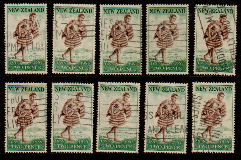New Zealand Multiple X10 - 1955 2d Maori Mail Man Used SG 739