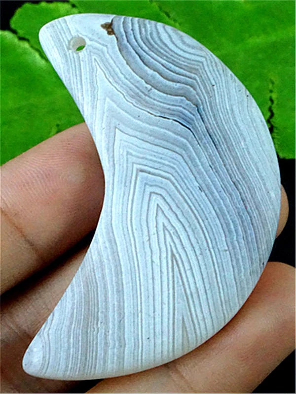 DY16369 50x24x6mm Natural White Stripes Agate Half-moon Pendant Bead