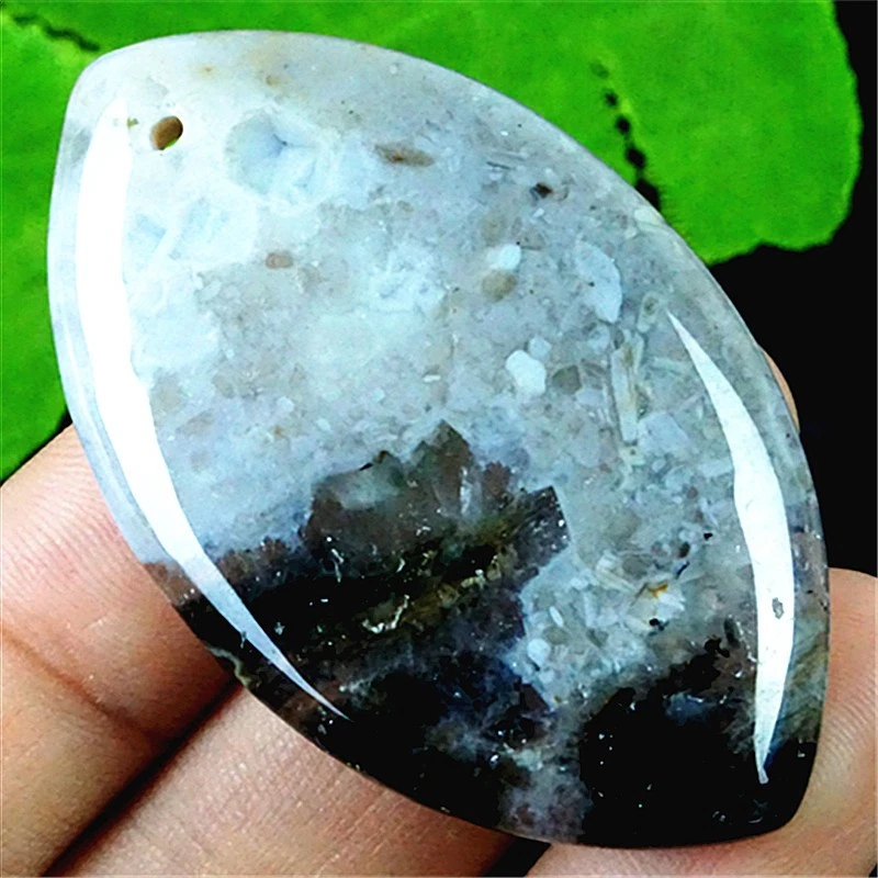 DY24006 62x33x6mm Natural Scenic Dendritic Agate Teardrop Pendant Bead