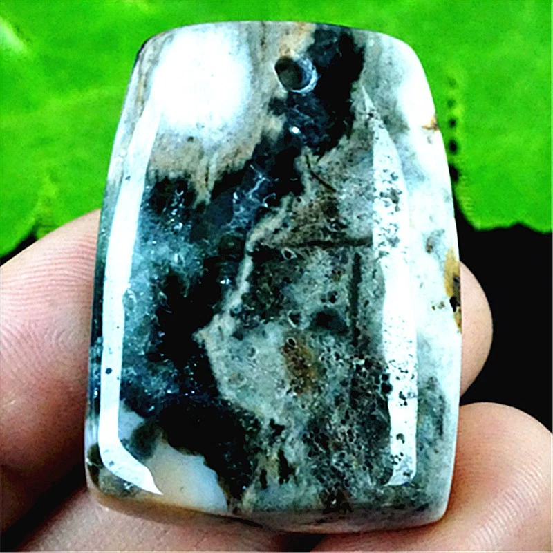 DY17137 35x26x15mm Natural Green/white Ocean Jasper Trapezium Pendant Bead
