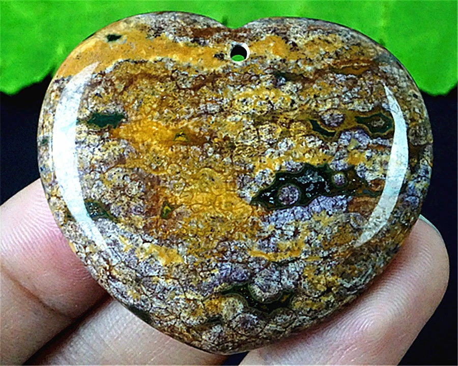 DY06986 44x37x8mm Natural Yellow/pink Ocean Jasper Heart Pendant Bead