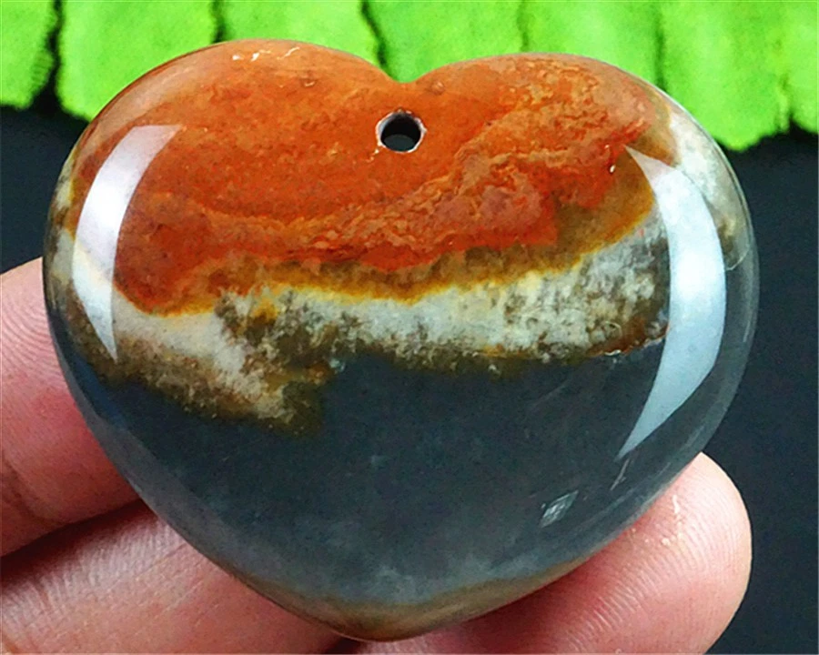 DY17719 42x37x8mm Natural Green/white Ocean Jasper Heart Pendant Bead