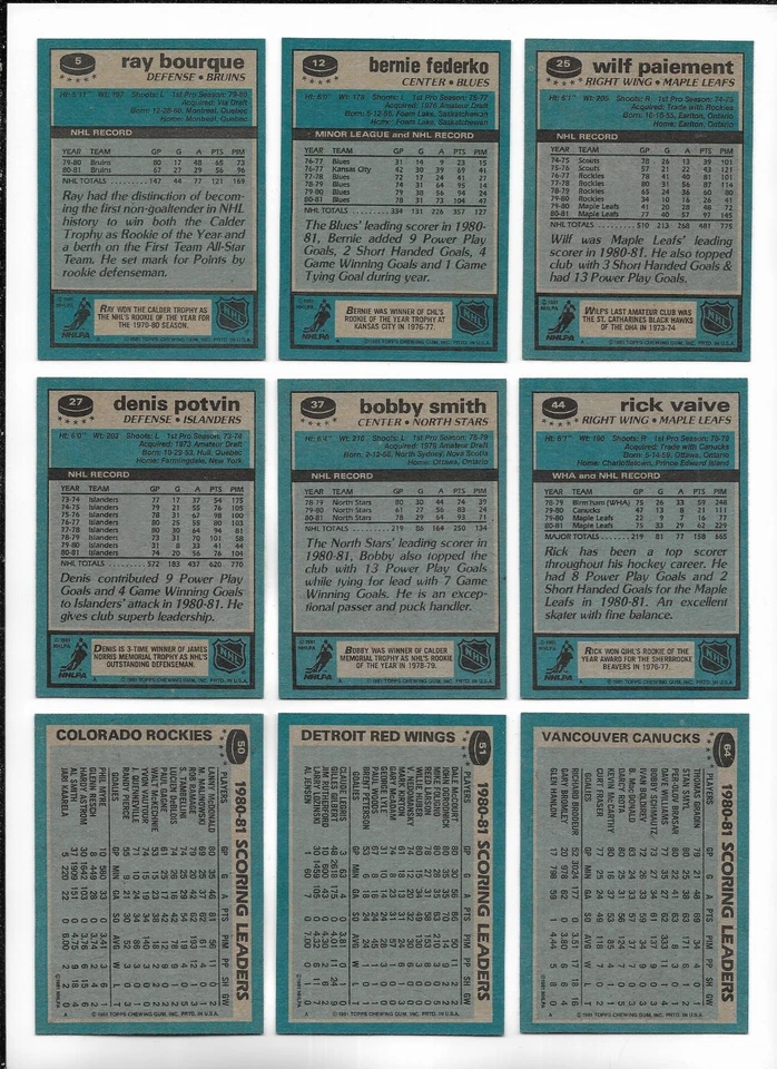 1981-82 Topps Hockey:Lot of 9 different