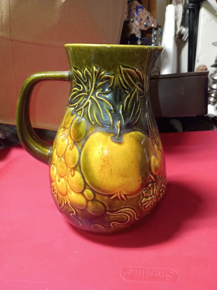 Vintage German Ceramic Pitcher Fruit Pattern Glossy Round 419-20