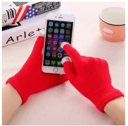 New men's and women's warm and thick fingered solid touch screen gloves 1