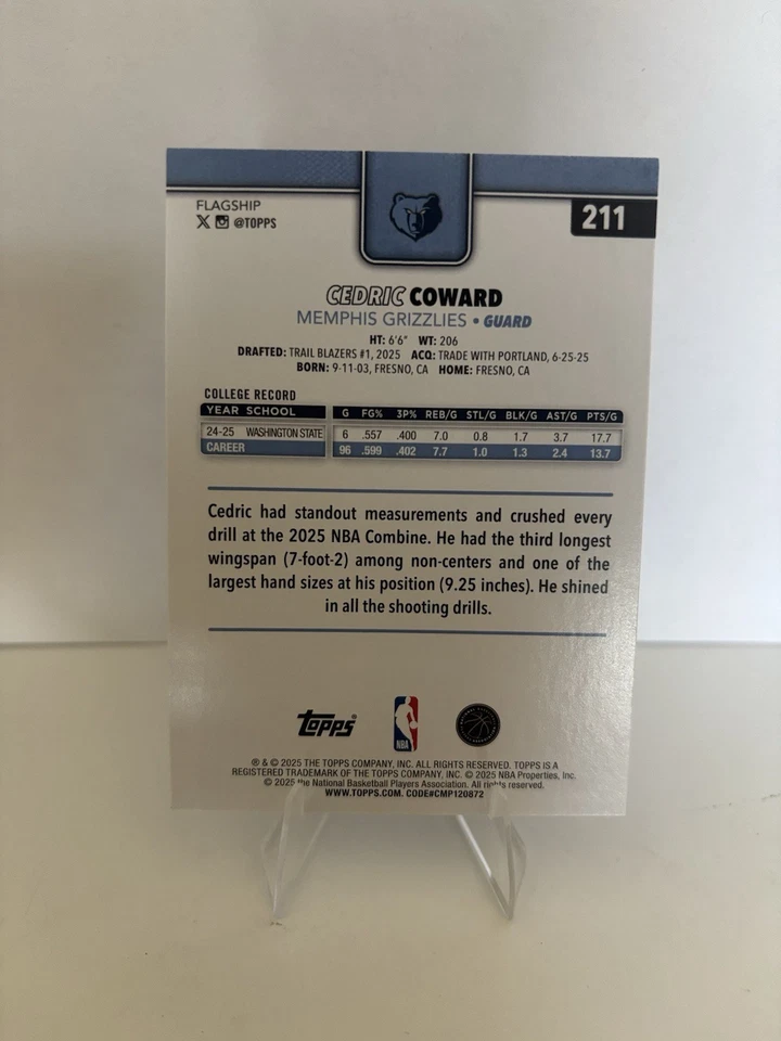 2025-26 Topps Flagship Basketball CEDRIC COWARD #211 1st Rookie RC