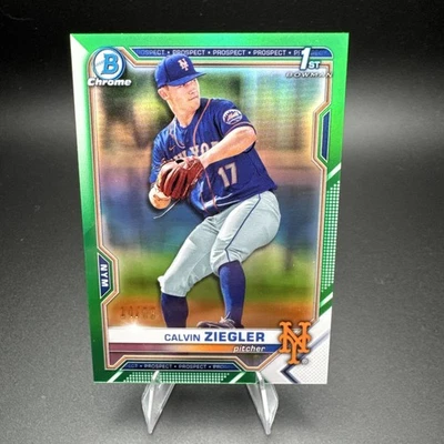 2021 Bowman Draft Chrome CALVIN ZIEGLER 1st Bowman Green Refractor 14/99 NY Mets
