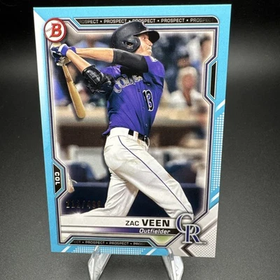 2021 Bowman Prospects Zac Veen #BP-3 Sky Blue SP#212/499 Colorado Rockies