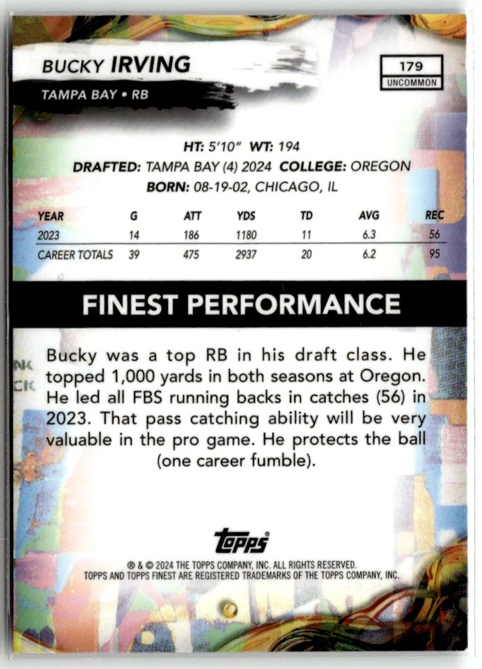 2024 Topps Finest - Uncommon Bucky Irving #179 Gold Refractor 4/25