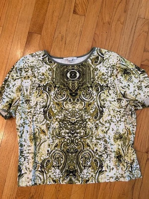 Women's JM COLLECTION Shades of Green Cream Patterned Knit Top Size XL