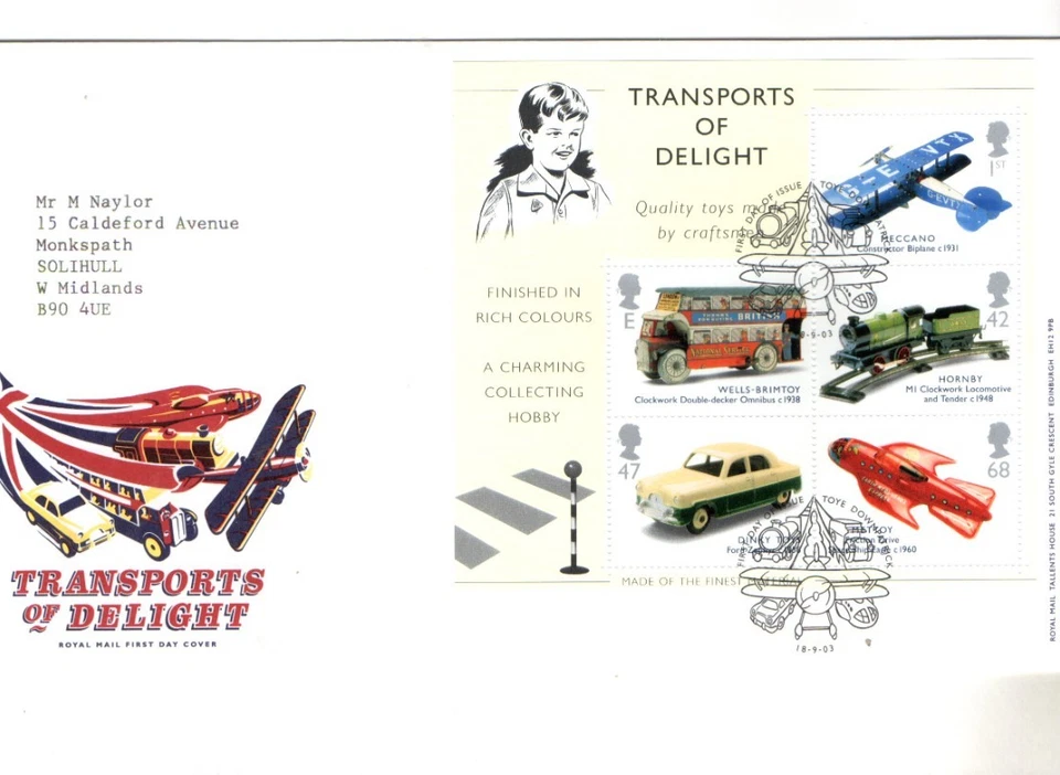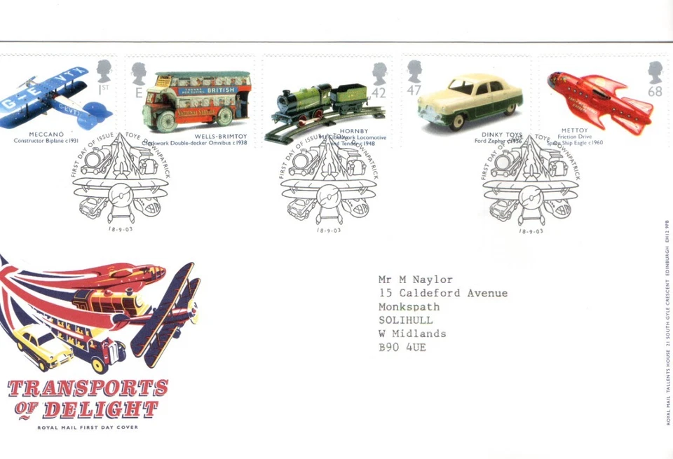 2003 TRANSPORTS OF DELIGHT - TOYE H/S FDC FROM COLLECTION J24