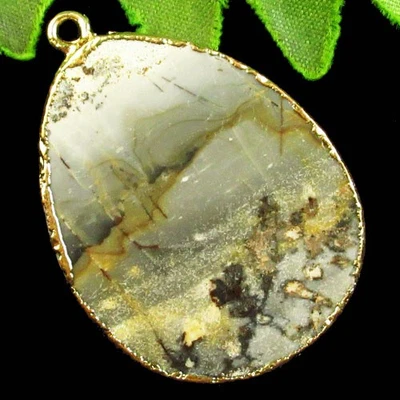 50x35x6mm Wrapped Nice Natural Picasso Jasper Teardrop Pendant Bead H98369