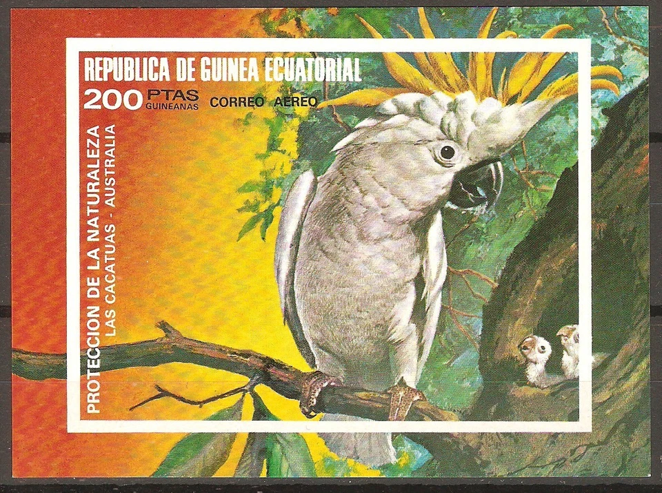 Australian Birds Yellow Crest Cockatoo 1974 Equatorial Guinea Block 150 MNH