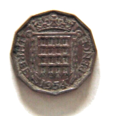 Vintage Queen Elizabeth II Brass 3D Coin 1954 (coin 1) Uncleaned as circulated