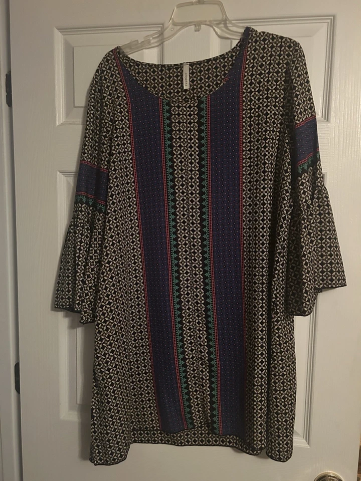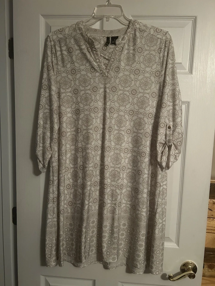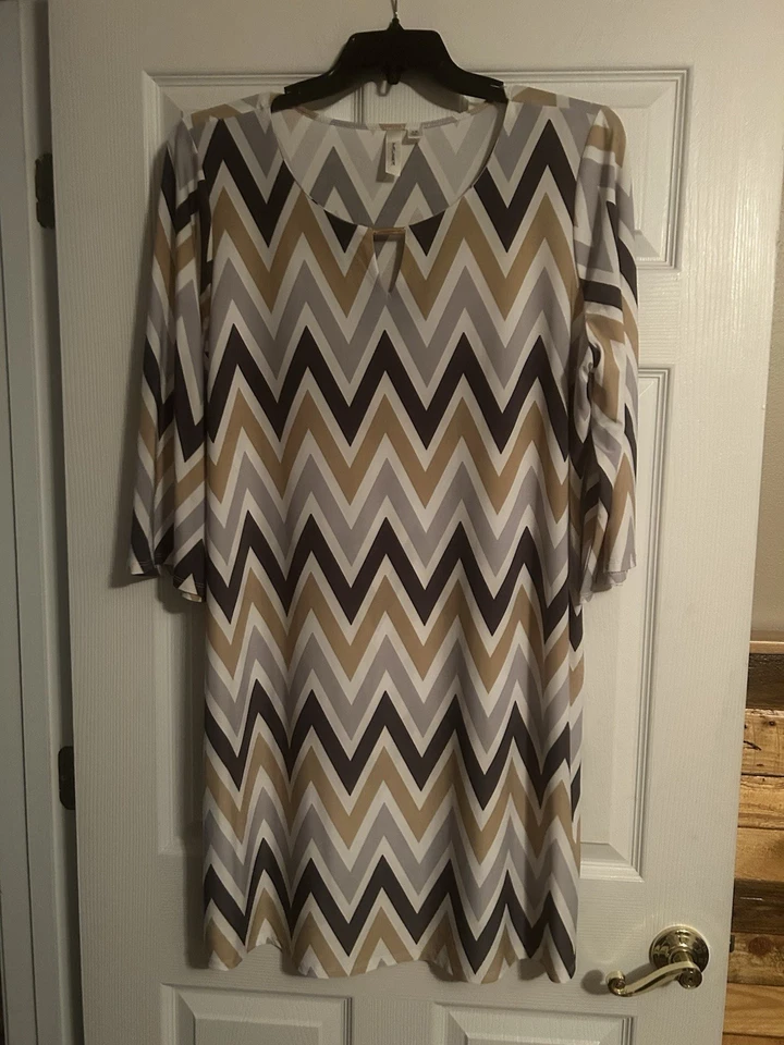Women’s Plus Size Tan, Gray & White Chevron Dress Size 2X