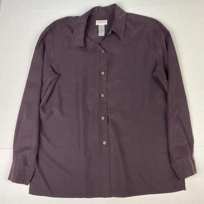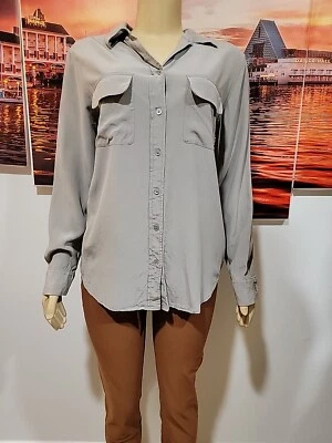 Equipment Femme silk buttons Up Women's Size L grey Top shirt Blouse, pockets #C
