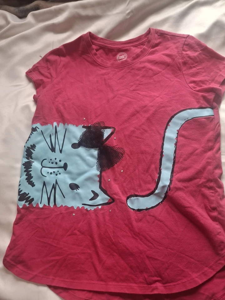 Girls Wonder Nation Pink CAT Shirt Sz 7/8