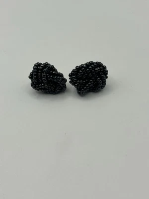 Vintage Black Beaded Cluster Earrings Post Back Estate Jewelry