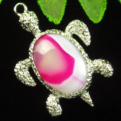 Wrapped Peach White Onyx Agate Tibetan Silver Tortoise Pendant Bead H97133