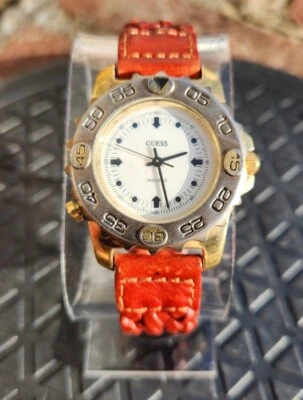 Vtg GUESS 1995 Indiglo Rotating Bezel 35mm Men's Watch NEW BAND & BATTERY!!!