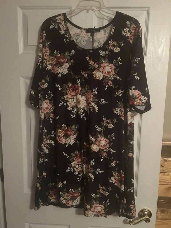 Women’s Plus Size Black Floral T-shirt Dress Size 1X