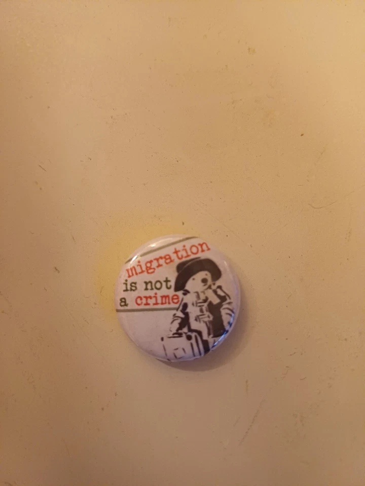 Pin Badge 'Migration Is Not A Crime' Bansksy Stencil Style Badge