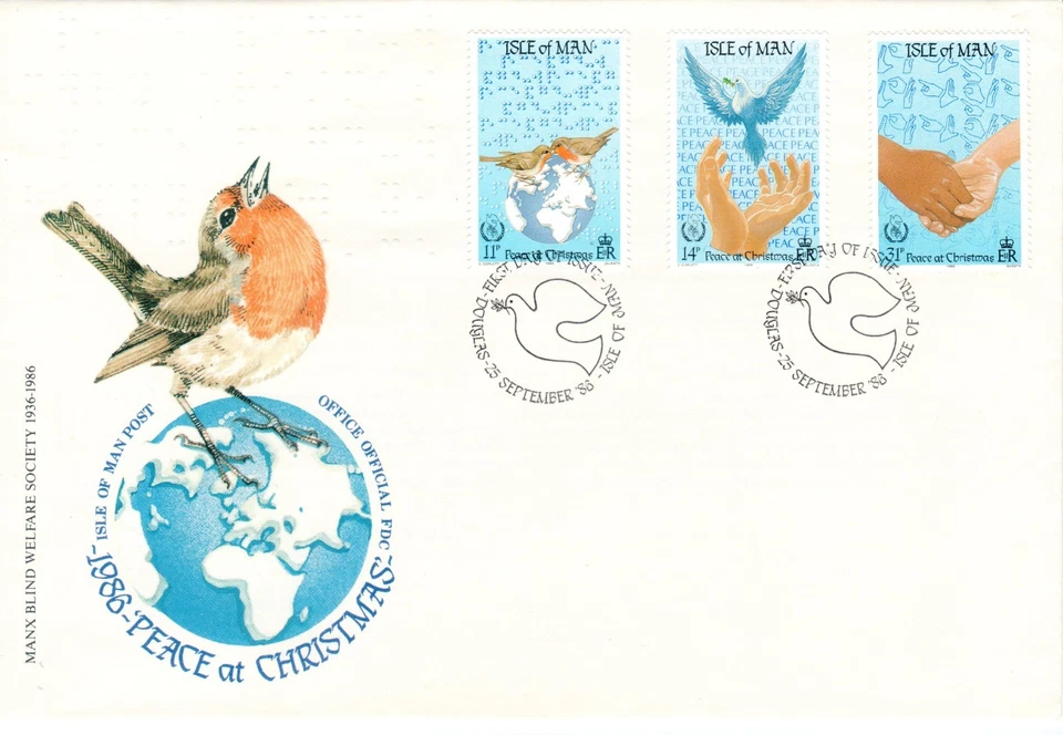 IOM FDC 1986 Christmas & International Peace Year SG 331-333