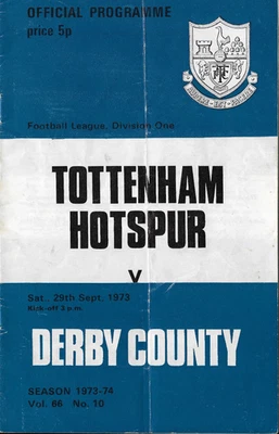 Tottenham Hotspur v Derby County 1973/74 Division One, match programme