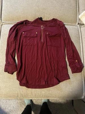 Cato Woman Blouse Short Sleeve Size XL Decorative EUC blue Redish Orange Tassel