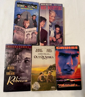5 VHS Mrs. Doubtfire, Home Alone 2, Days of Thunder, Out of Africa, Rebecca