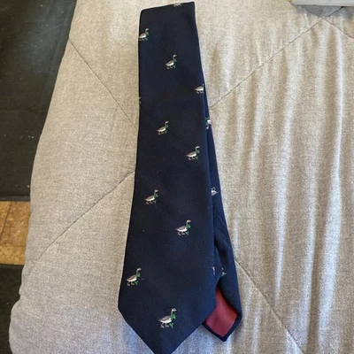 Navy Blue Men’s Tie With Holiday Pattern Of Geese