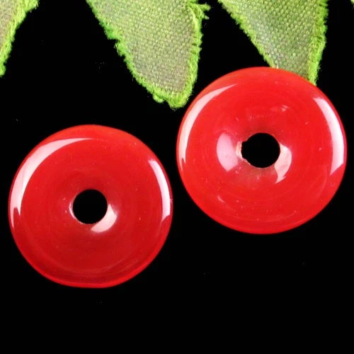 2Pcs 20x3mm Red Agate Donut Pendant Bead H98041
