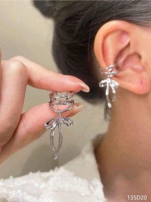 Trendy ribbon bow tie ear cuff, ballet-style non-pierced earrings