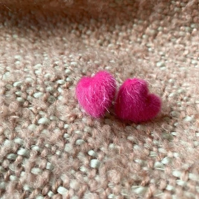 Vintage Hand Painted Folk Art Green Floral Wood Heart Post Stud Earrings