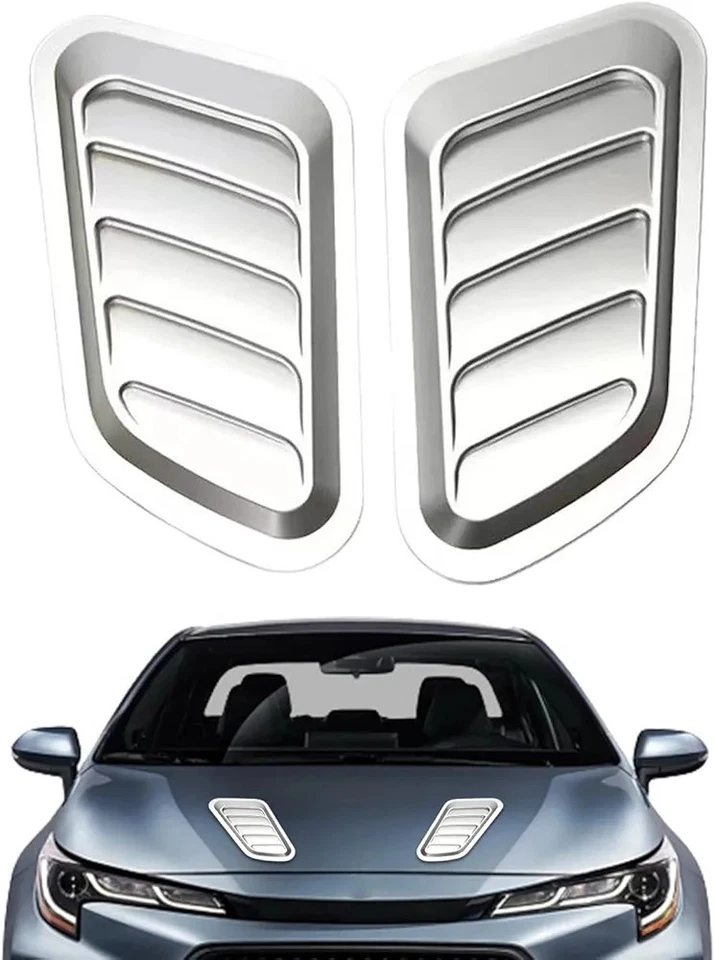 Car Bonnet Hood Air Vent Covers – Decorative Silver Scoops (Pair)