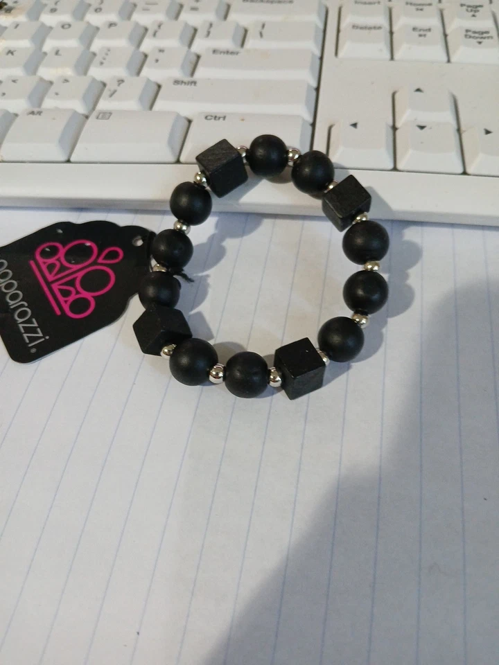 Blue and Gray Stone and Shell Chip Woven Beaded Bracelet Adjustable 7.5-8" Long