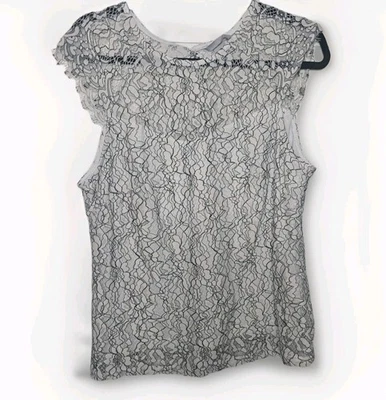 NWOT Shein Women’s Knitted Sleeveless Sweater Top 8/10 L Large White Black NEW