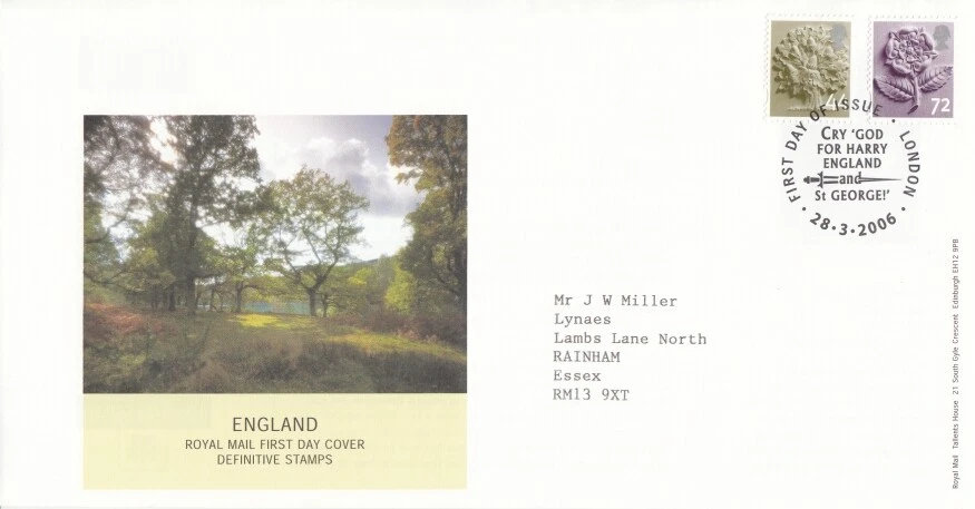 2006 44p & 72p England Definitive - Cry God For Harry H/S FDC.