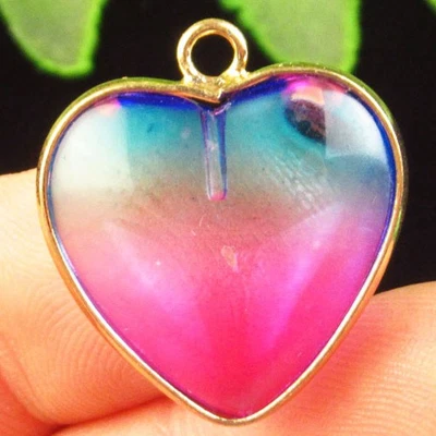 Wrapped Peachblow Blue Titanium Crystal Heart Pendant Bead H99079
